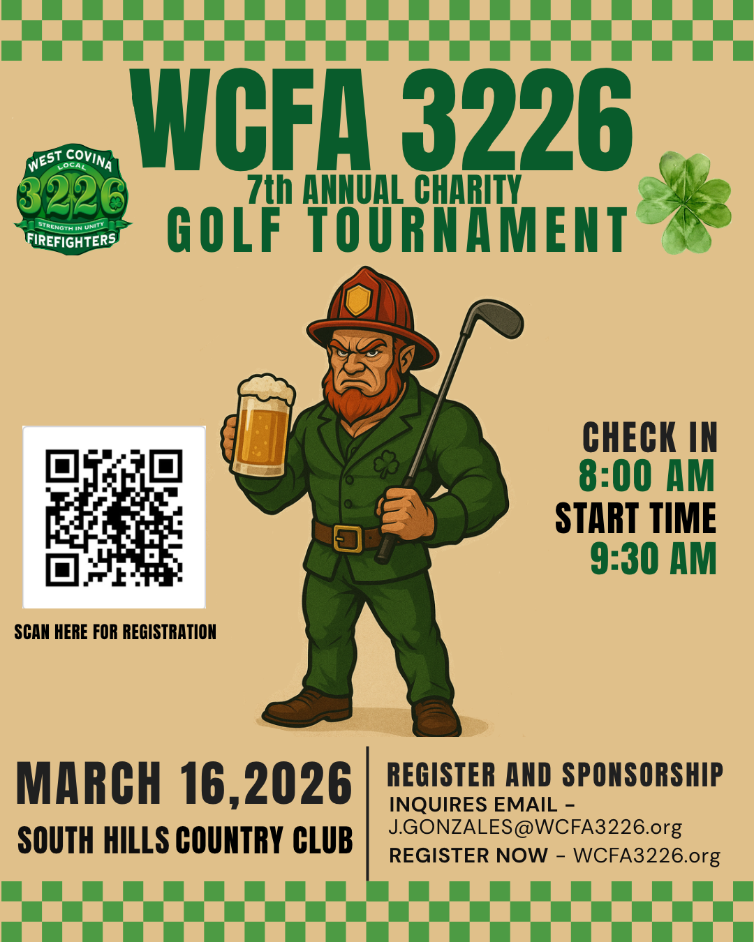 SCAN THE QR CODE ON THE FLYER OR USE THE LINK ABOVE TO REGISTER FOR THE WCFA 3226 GOLF TOURNAMENT